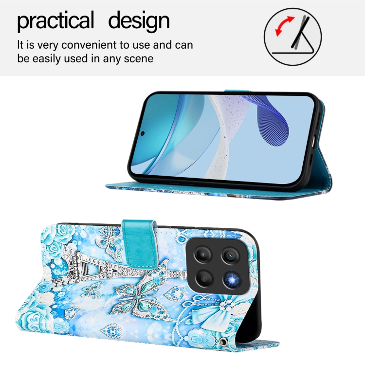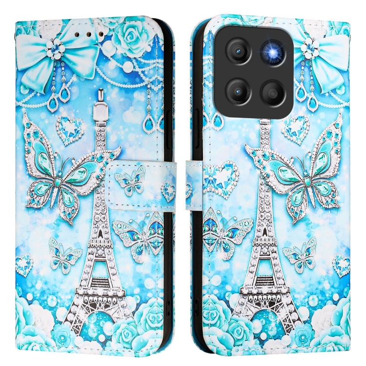 Funda de Cuero Motorola Moto G15 con Dibujo Mariposa en Forma de Torre (Liso)
