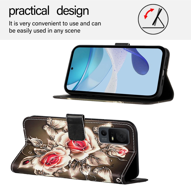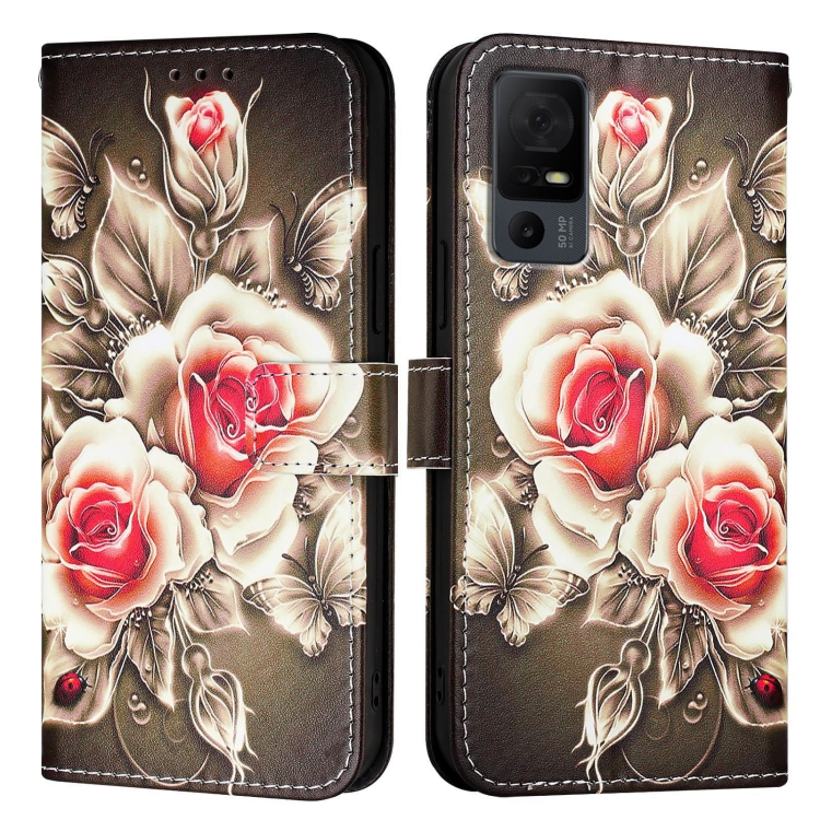 Funda de Cuero para TCL 40 Xl/40T T608Dl con Diseño de Dibujo (Rosas Sobre Negro)