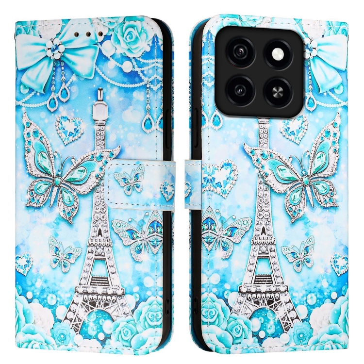 Funda de Cuero para ZTE Blade A35/A55 con Diseño Mariposa en Forma de Torre (Liso)