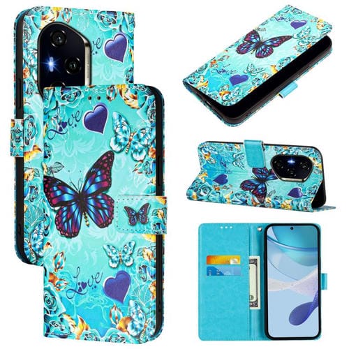 Funda de Cuero para Honor 300 Pro/300 Ultra con Diseño Mariposa de Amor y Tejido Liso