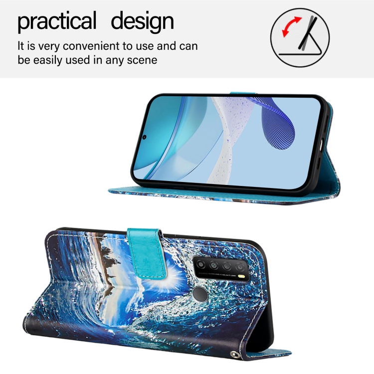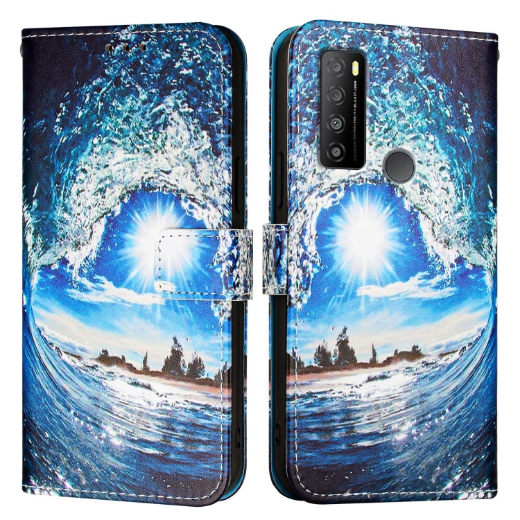 Funda de Cuero para TCL 30Z T602Dl con Diseño Ondas y Sol (Color Liso)