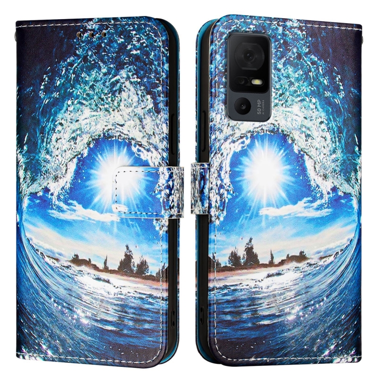 Funda de Cuero para TCL 40 XL/40T T608Dl con Diseño de Dibujos Ondas y Sol (Color Liso)