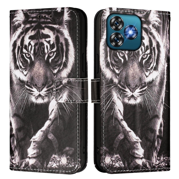 Funda de Cuero para Teléfono Oukitel C53 con Diseño Tigre (Blanco y Negro)