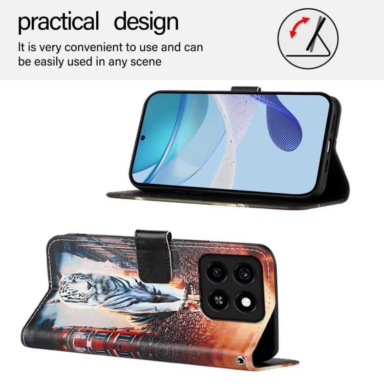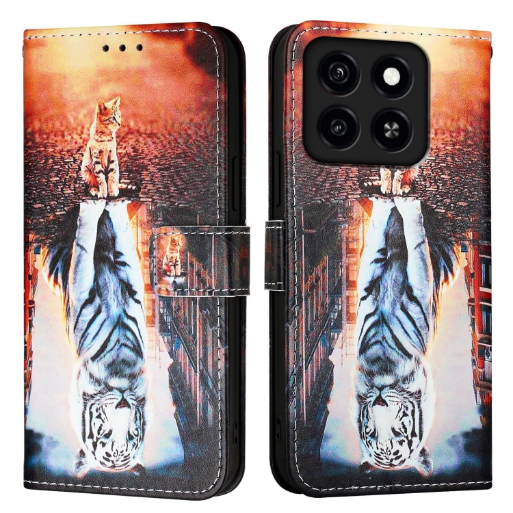 Funda de Cuero para ZTE Blade A35/A55 con Diseño de Gatos y Tigres