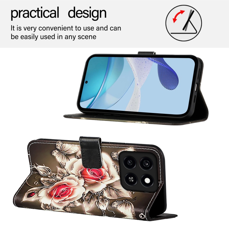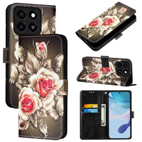 Funda de Cuero para ZTE Blade A35/A55 con Diseño de Dibujos en Color Liso (Rosas Sobre Negro)