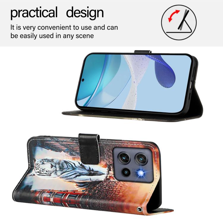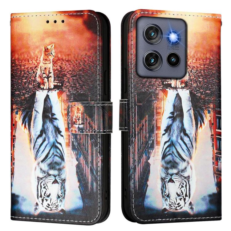 Funda de Cuero para Motorola Moto G Stylus 5G 2025 con Diseño de Gatos y Tigres (Colores Lisos)