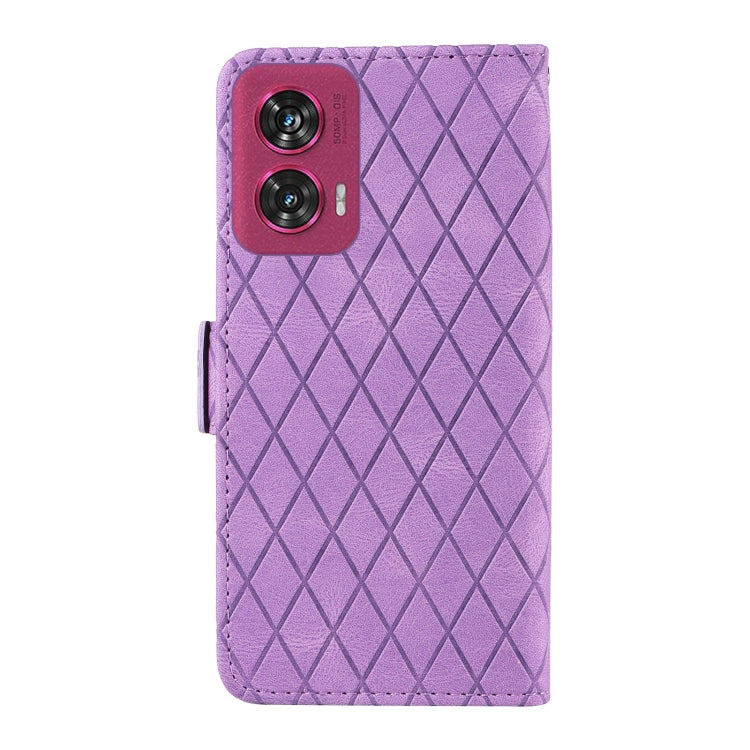 Funda de Cuero Motorola Edge 50 Fusion con Diseño Entramado Rombal de Dos Colores (Morado)