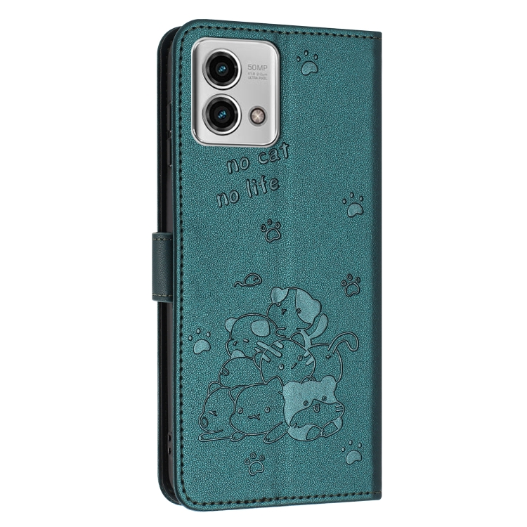 Funda de Cuero Motorola Moto G Stylus 2023 4G con Diseño de Gatito y Cordón (Verde Oscuro)