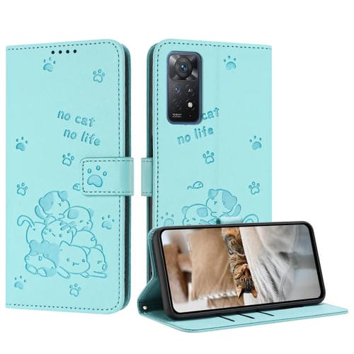 Funda de Piel con Diseño de Gatito En Relieve para Redmi Note 12 Pro 4G con Cordón (Verde Menta)