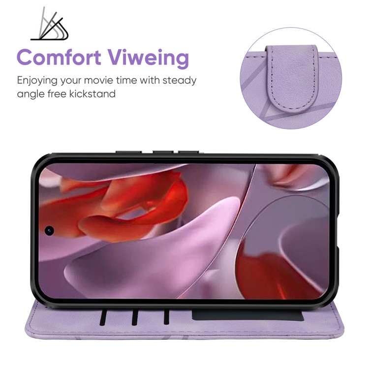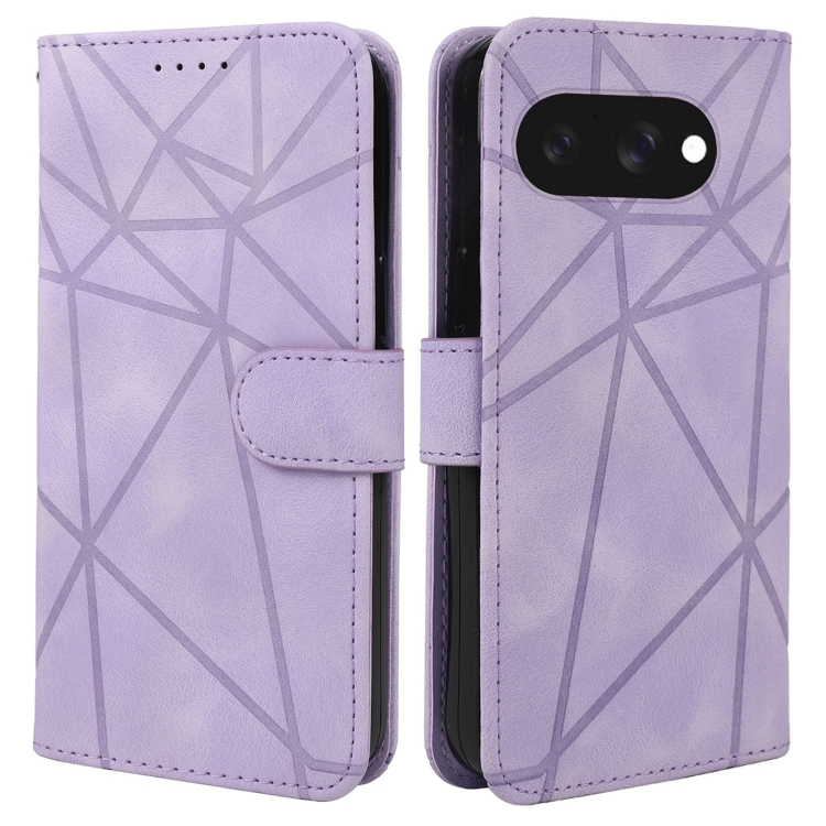 Funda de Cuero para Google Pixel 9A con Diseño de Líneas Geométricas y Tacto Suave (Morado)