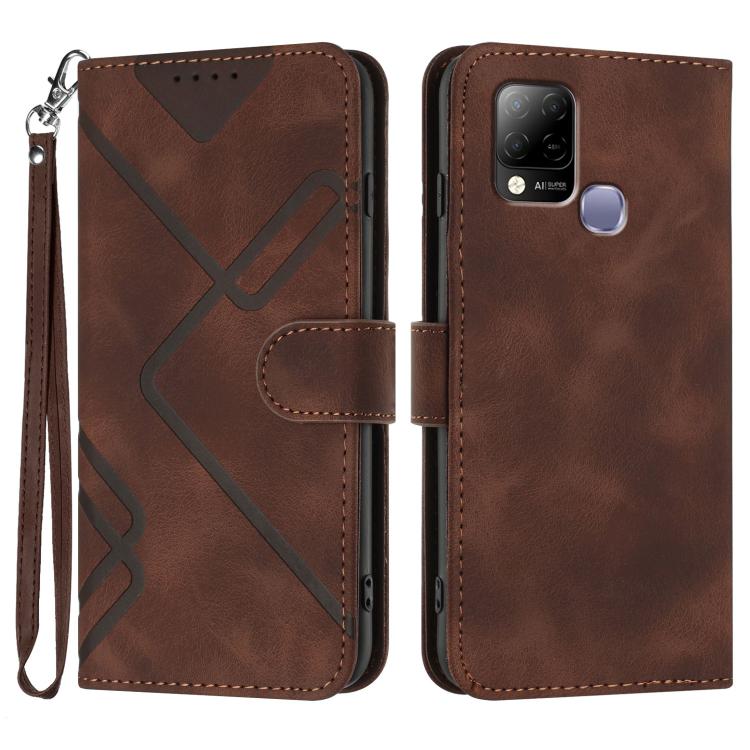 Funda de Cuero para Infinix Hot 10T y Hot 10S con Diseño de Líneas y Tacto Suave (Café)
