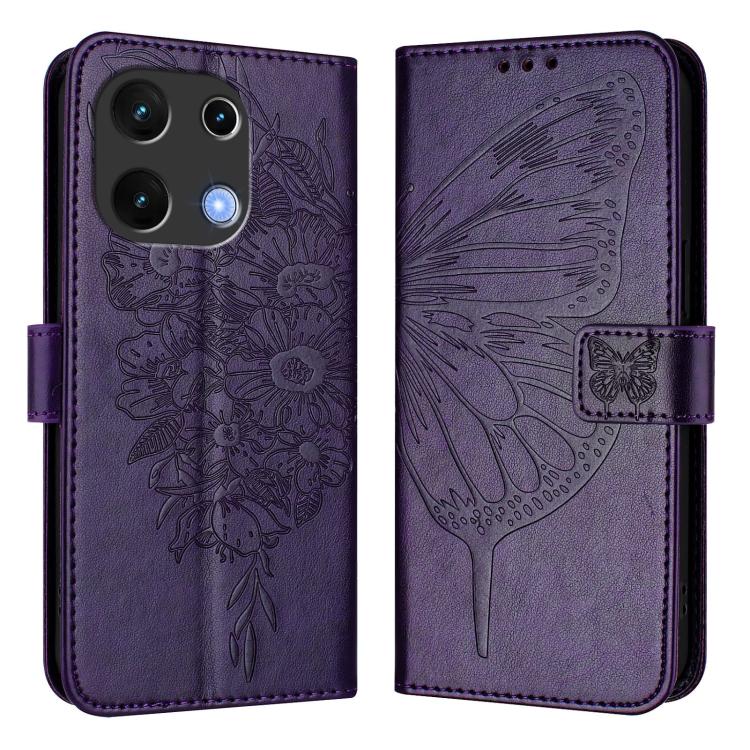 Funda de Cuero para Umidigi Note 100 con Diseño de Mariposa en Relieve (Morado Oscuro)
