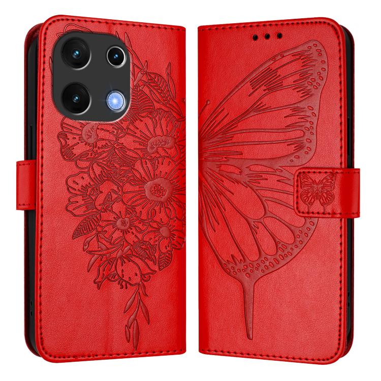 Funda de Cuero para Umidigi Note 100 con Diseño de Mariposa En Relieve (Roja)