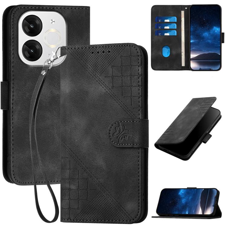 Funda de Cuero Itel A80 con Diseño de Mariposa En Relieve y Cordón (Negro)
