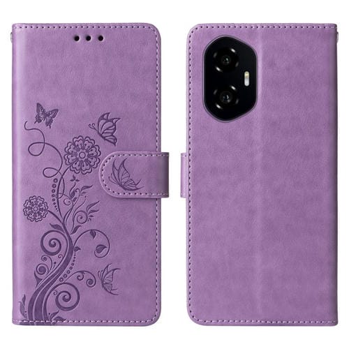 Funda de Cuero Honor 300 Diseño Mariposas y Flores en Relieve (Morado)
