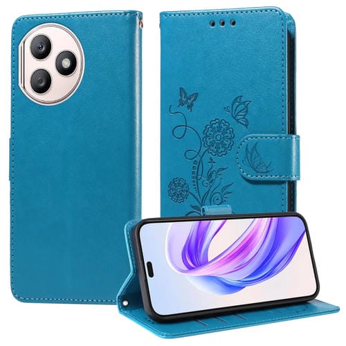 Funda de Cuero Honor X50I+ con Diseño de Mariposas y Flores en Relieve (Azul)