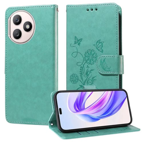 Funda de Cuero Honor X50I+ con Diseño de Mariposas y Flores en Relieve (Verde)