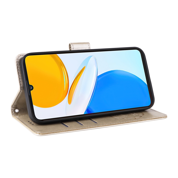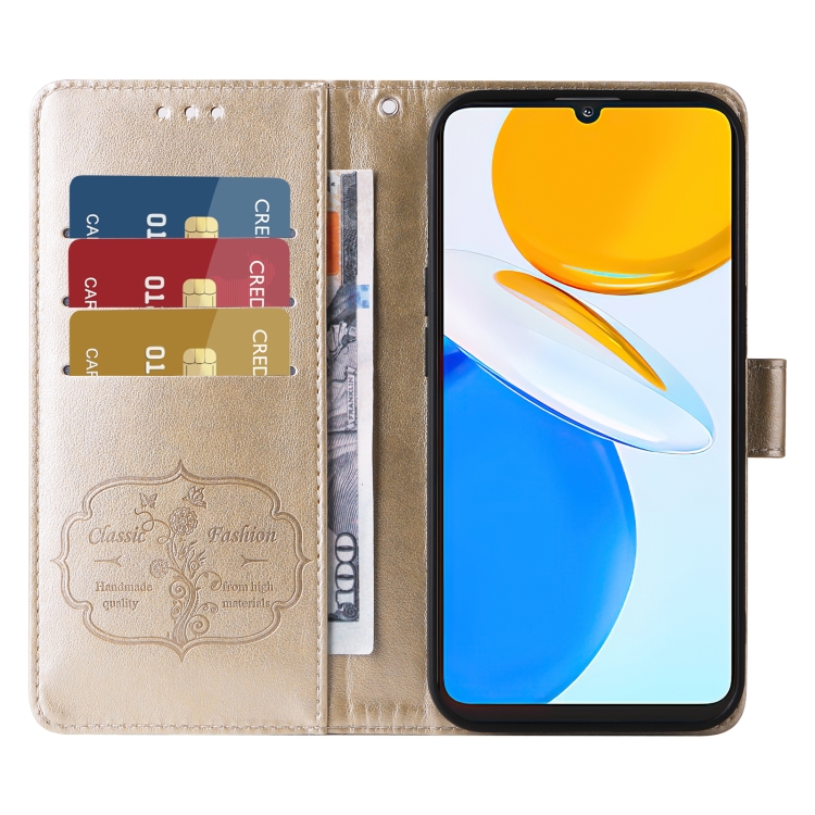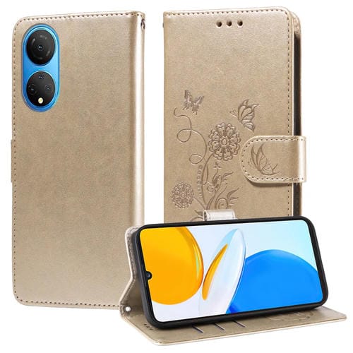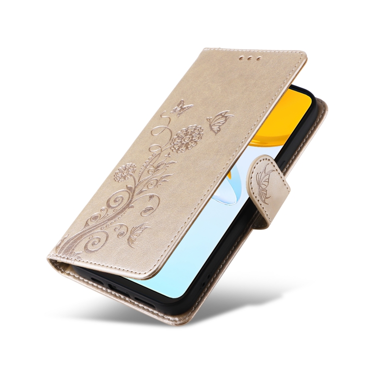 Funda de Cuero con Mariposas y Flores en Relieve para Honor X7 4G Huawei Enjoy 30 Plus (Dorada)