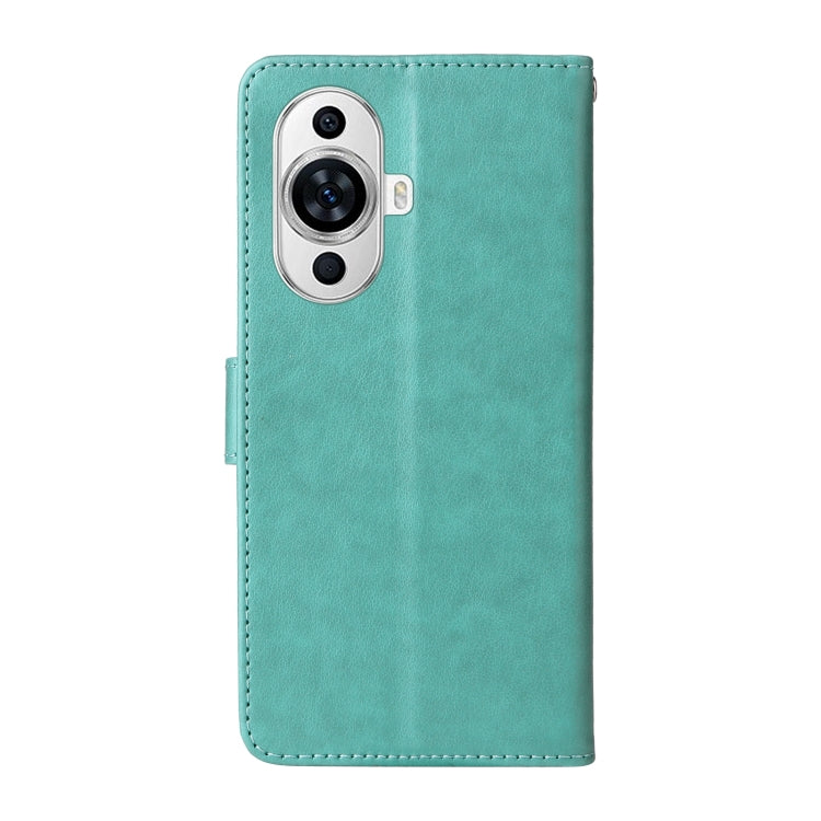 Funda de Cuero Huawei Nova 11 5G/4G y Nova 12 Lite con Mariposas y Flores en Relieve (Verde)