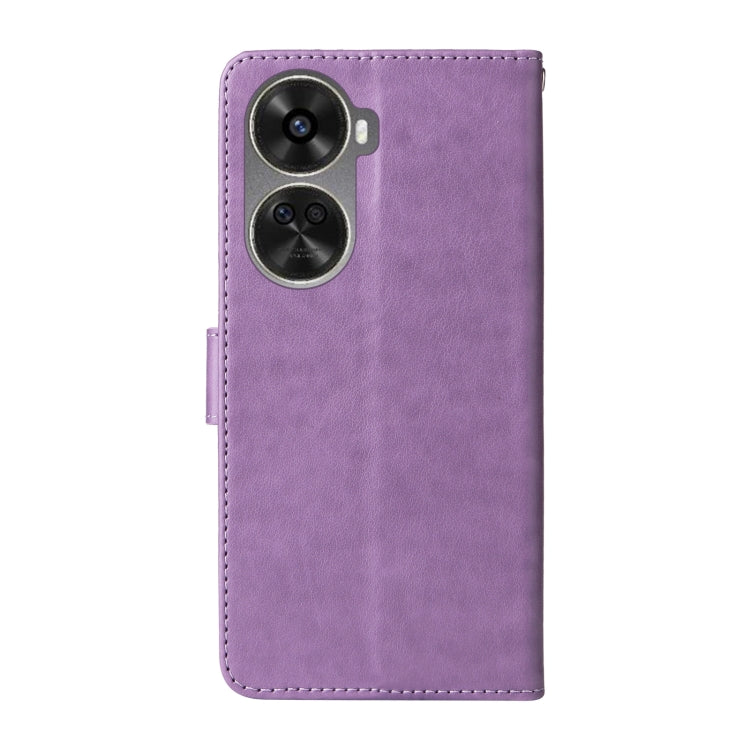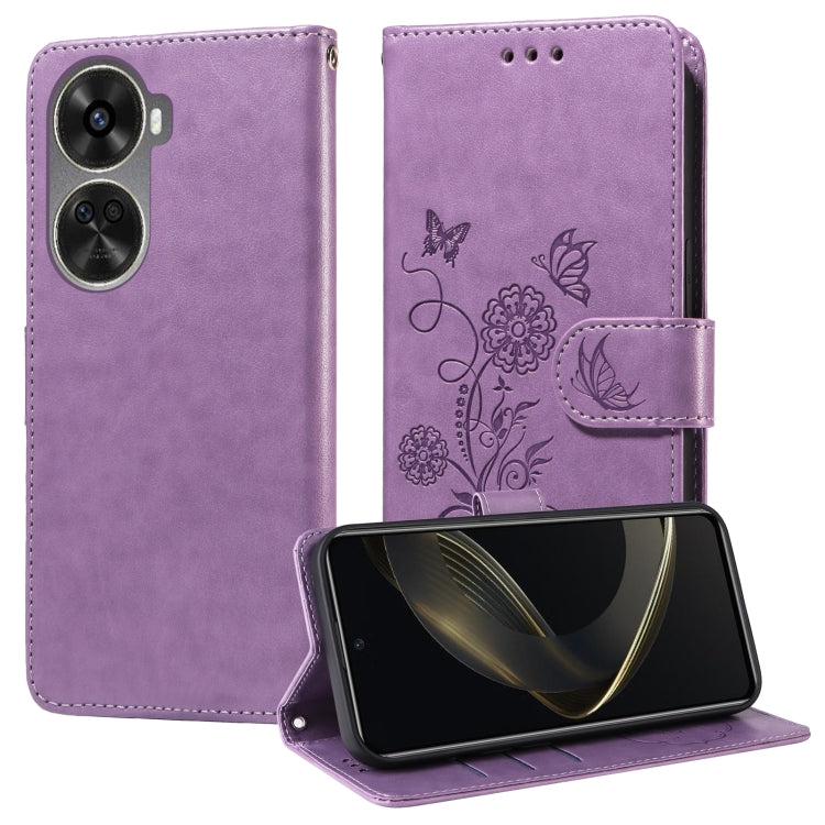 Funda de Cuero para Huawei Nova 12 Se 4G con Diseño de Mariposas y Flores en Relieve (Morado)
