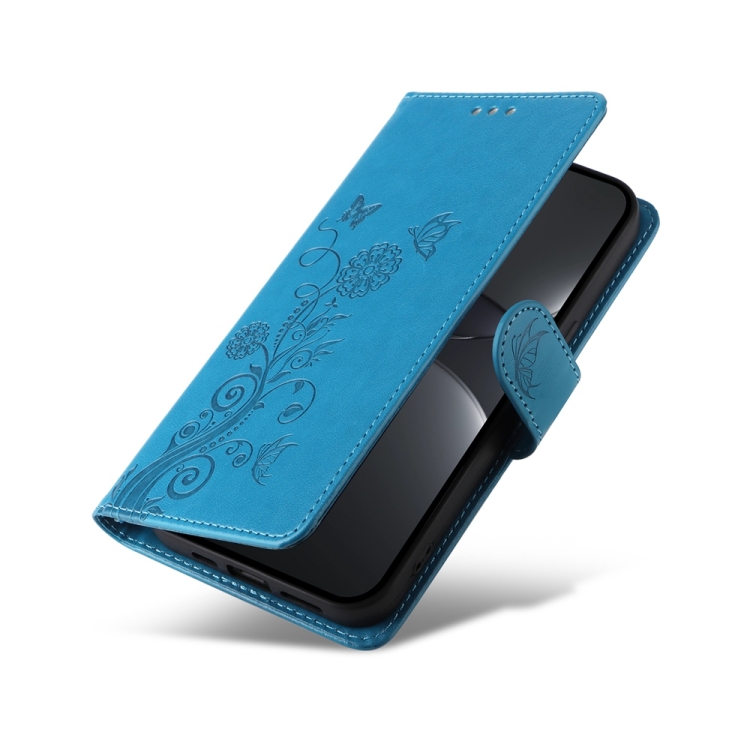 Funda de Cuero para Huawei Nova 13 Pro con Diseño de Mariposas y Flores en Relieve (Azul)