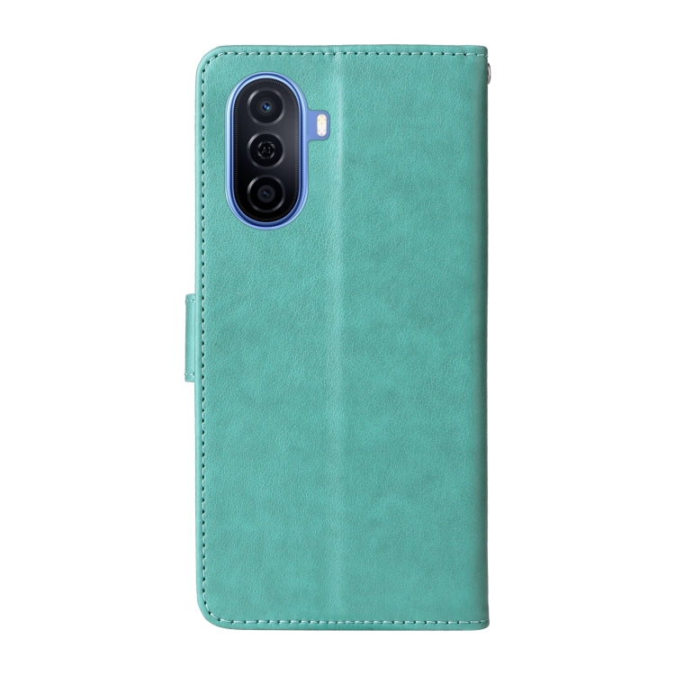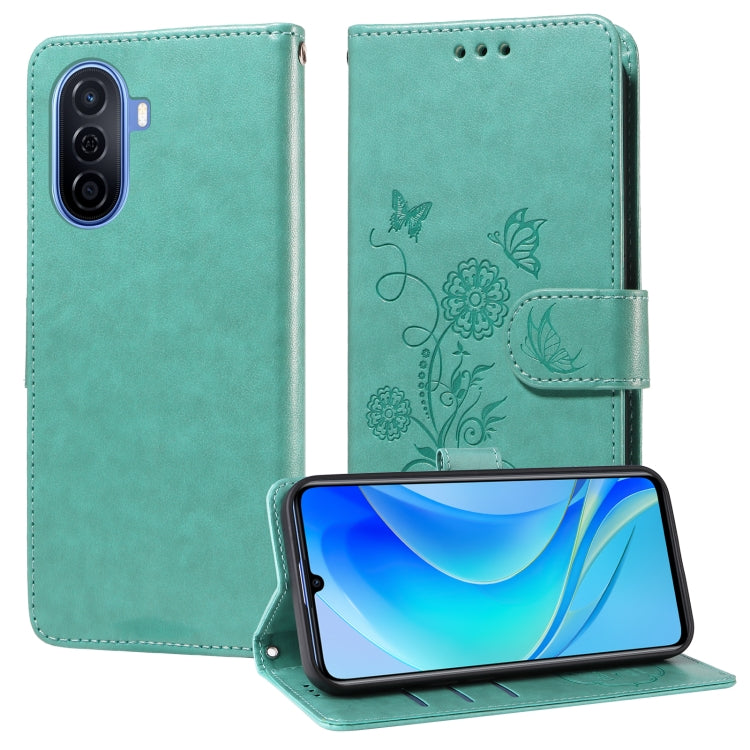 Funda de Cuero para Huawei Nova Y70 Plus con Diseño de Mariposas y Flores en Relieve (Verde)