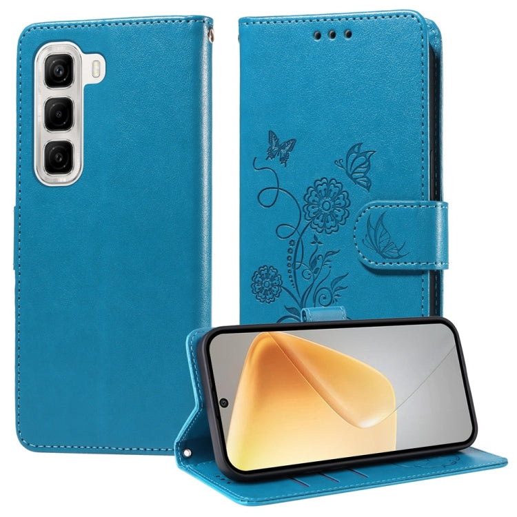 Funda de Cuero para Infinix Hot 50 4G con Diseño de Mariposas y Flores en Relieve (Azul)