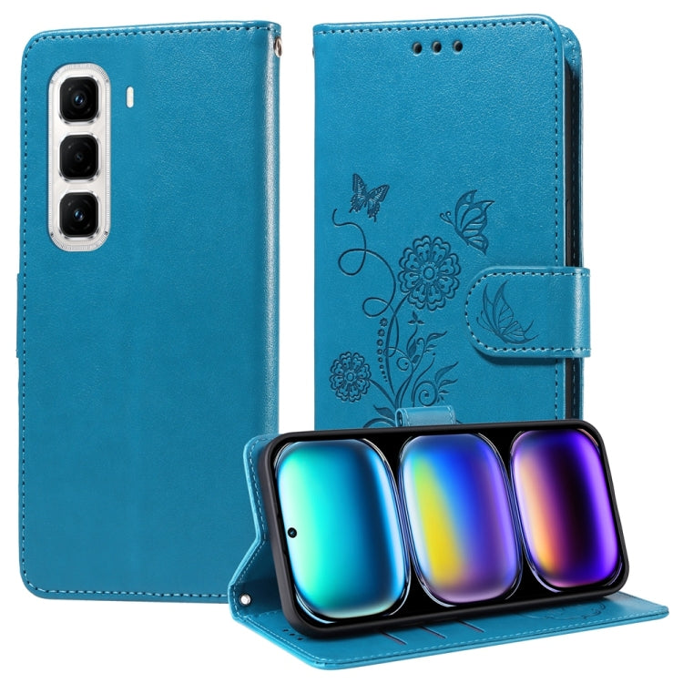 Funda de Cuero para Infinix Hot 50 Pro+ 4G con Diseño de Mariposas y Flores en Relieve (Azul)