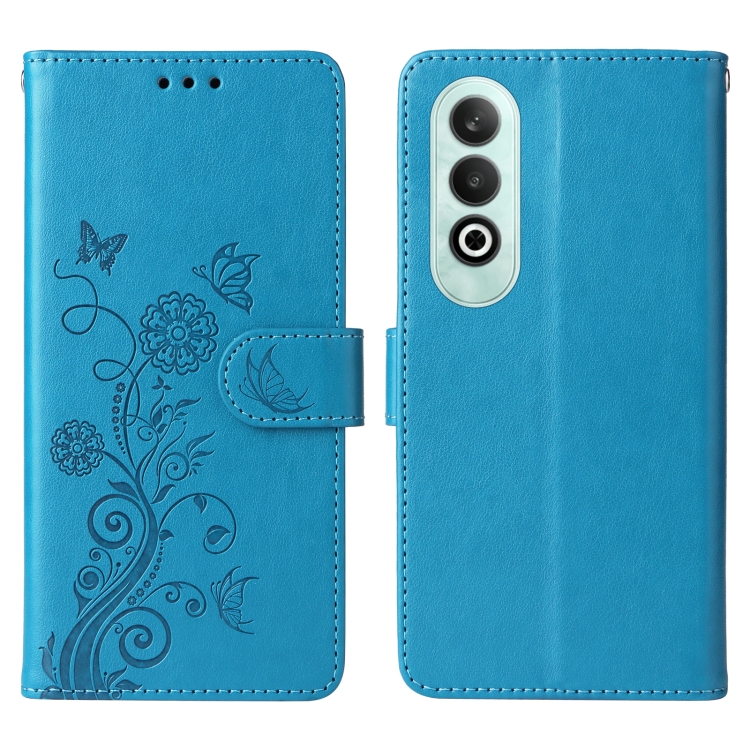 Funda de Cuero OnePlus Nord Ce 4 5G con Diseño de Mariposas y Flores en Relieve (Azul)