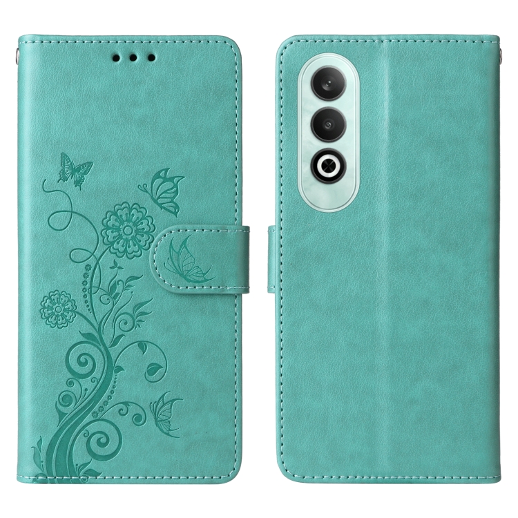 Funda de Cuero OnePlus Nord Ce 4 5G Diseño Mariposas y Flores en Relieve (Verde)