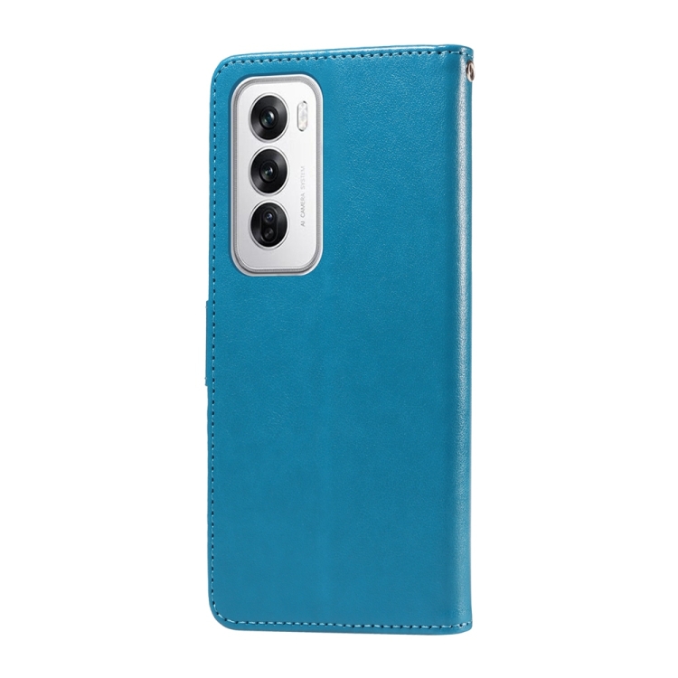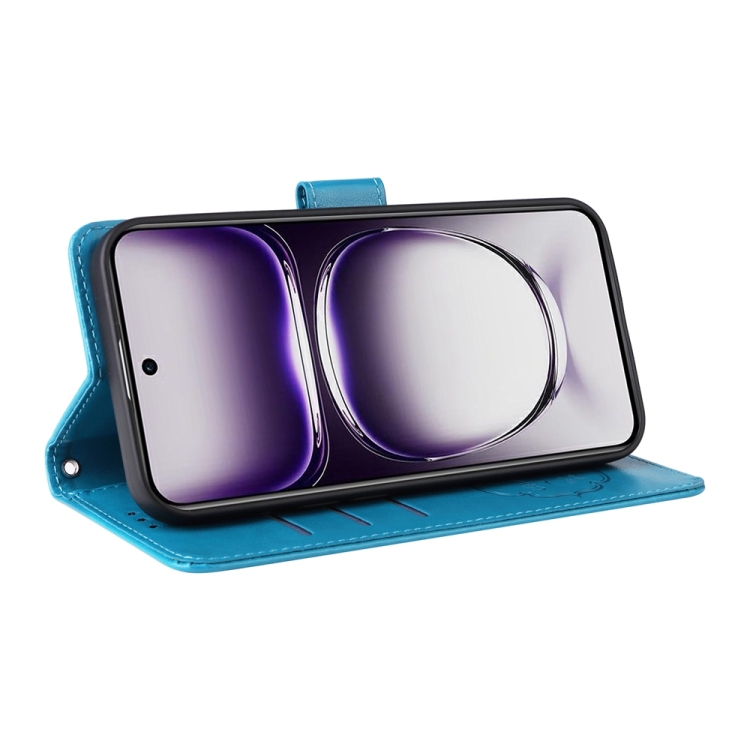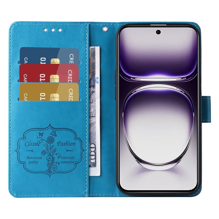 Funda de Cuero con Diseño de Mariposas y Flores En Relieve para Oppo Reno12 Pro 5G (Azul)