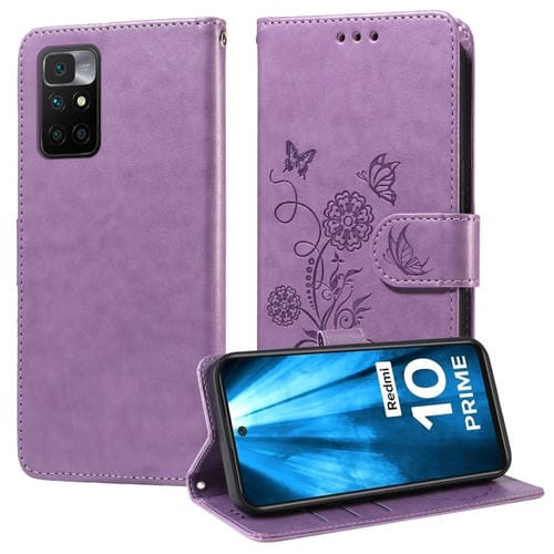 Funda de Cuero con Diseño de Mariposas y Flores En Relieve para Redmi 10 2022/10 Prime (Morado)