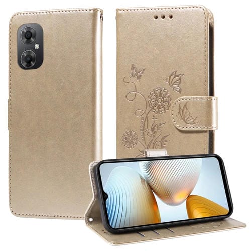 Funda de Cuero con Diseño de Mariposas y Flores En Relieve para Xiaomi Poco M4 5G/M5 4G (Dorada)