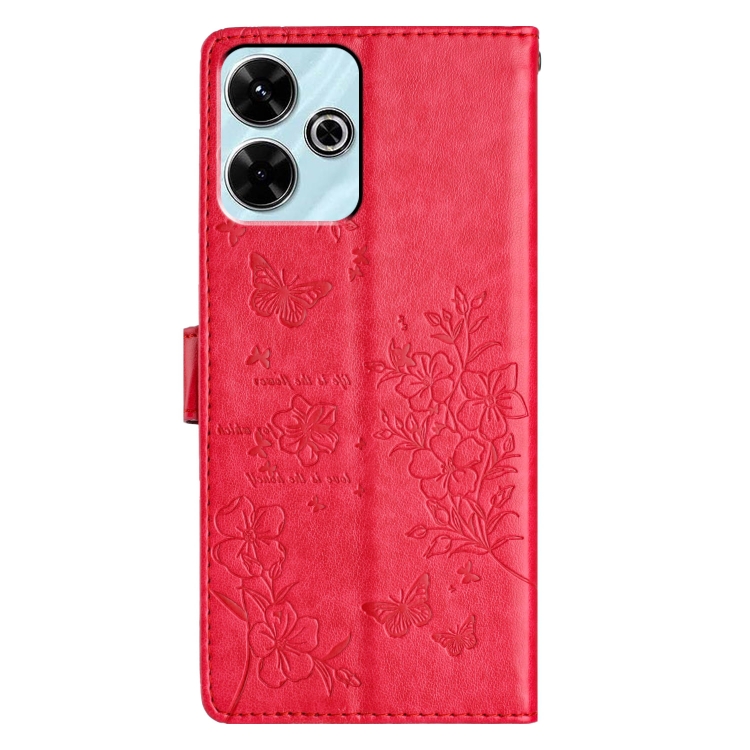 Funda de Cuero con Diseño de Mariposas y Flores para Redmi 13 4G (Rojo)