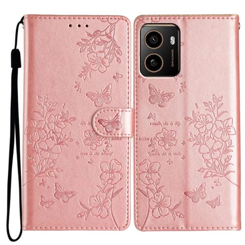Funda de Cuero para Teléfono Hmd Pulse+ con Diseño de Mariposas y Flores (Oro Rosa)