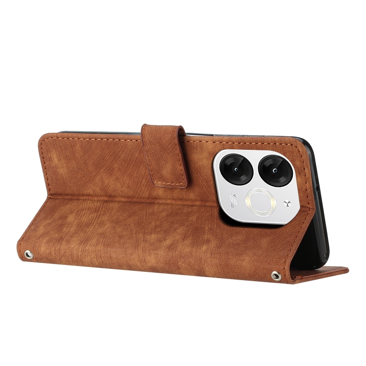 Funda de Cuero Itel A80 con Diseño de Rayas y Cordón (Marrón)