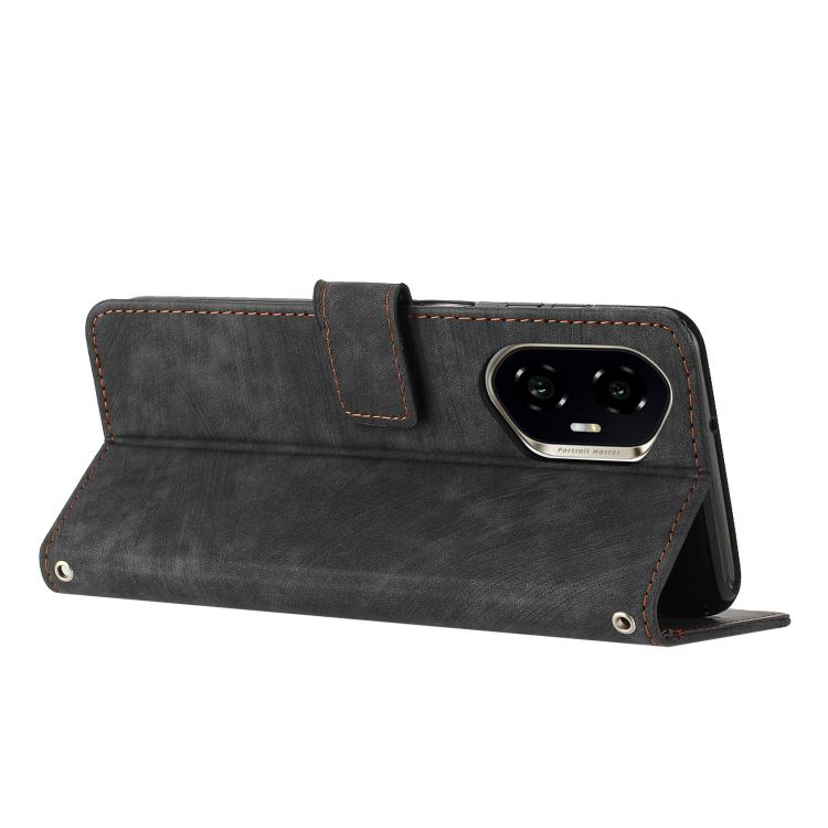 Funda de Cuero Honor 300 con Diseño de Rayas y Cordón para Teléfono (Negro)