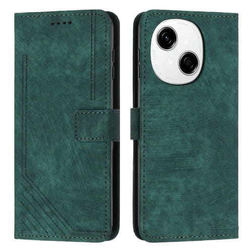 Funda de Cuero para Tecno Spark Go 1 con Diseño de Rayas y Tacto Sedoso (Verde)