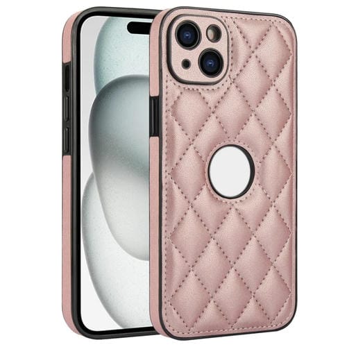 Funda de Cuero para iPhone 13 Diseño de Rombos (Oro Rosa)