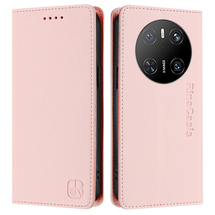 Funda de Cuero con Doble Pliegue y Succión Magnética para Huawei Mate 70 Rc01 (Rosa)