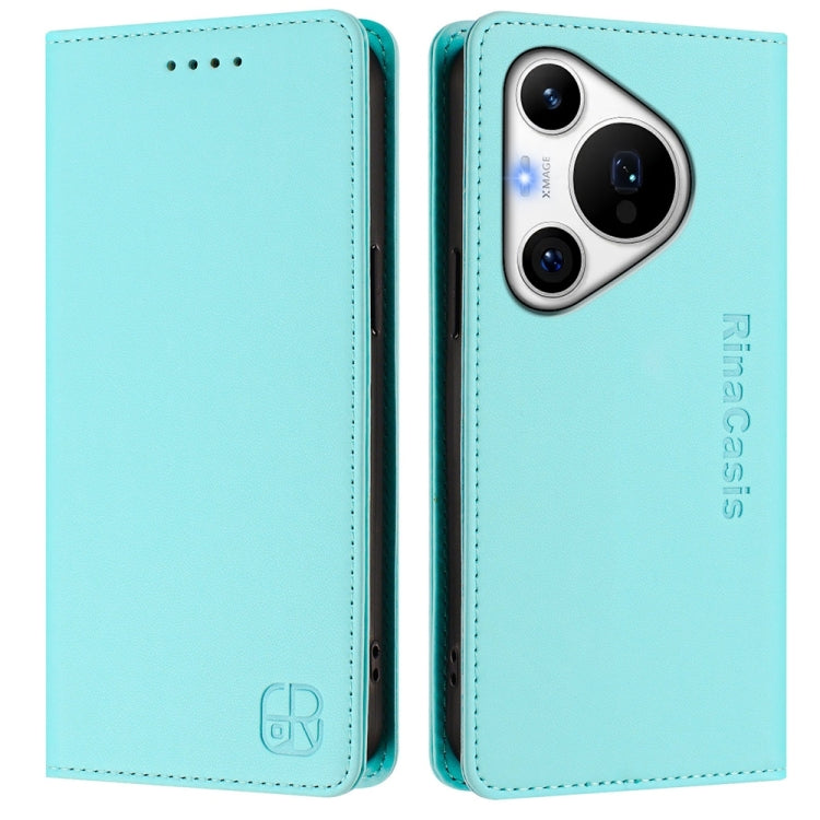 Funda de Cuero con Doble Pliegue y Succión Magnética para Huawei Pura 70 Pro/Pura 70 Pro+ (Verde Menta)