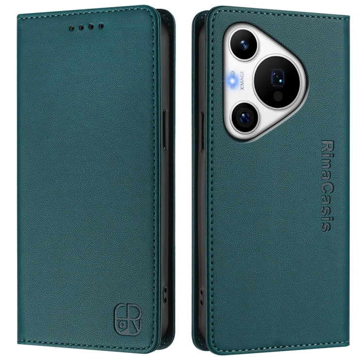 Funda de Cuero Huawei Pura 70 Pro/Pura 70 Pro+ Rc01 con Doble Pliegue y Succión Magnética (Verde Oscuro)