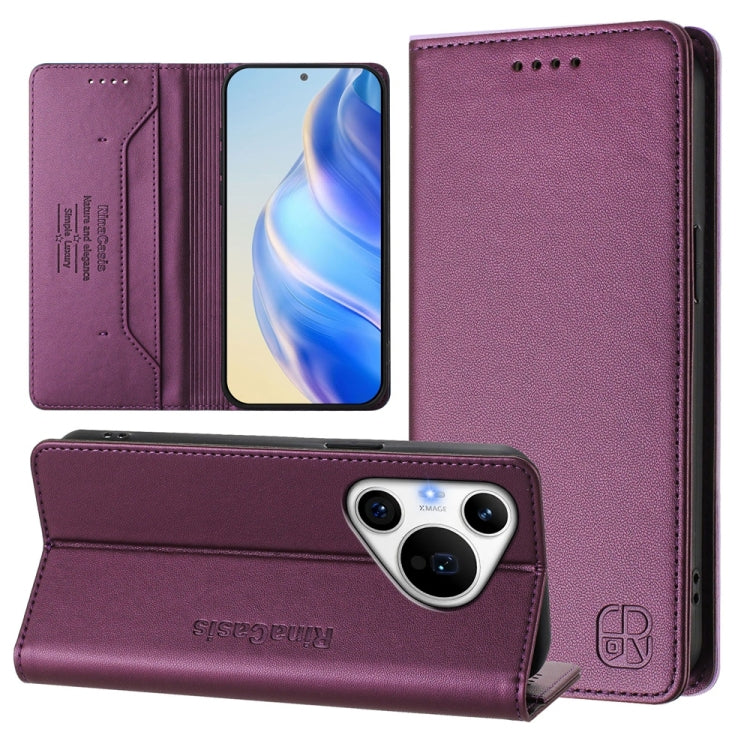 Funda de Cuero con Doble Pliegue y Succión Magnética para Huawei Pura 70 Pro/Pura 70 Pro+ Rc01 (Violeta)