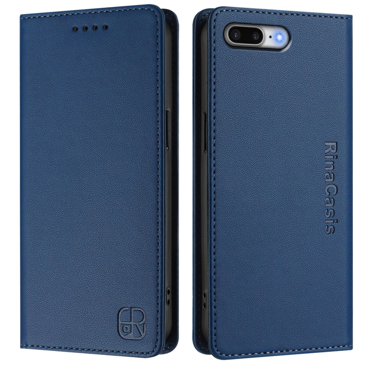 Funda de Cuero con Doble Pliegue y Succión Magnética para iPhone 7 Plus 8 Plus Rc01 (Azul Oscuro)