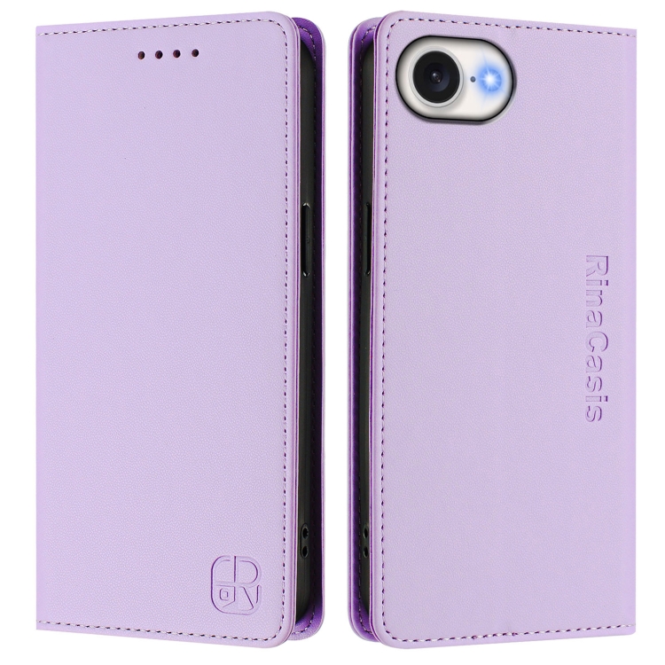 Funda de Cuero con Doble Pliegue y Succión Magnética para iPhone Se 2024 Rc01 (Morado Claro)