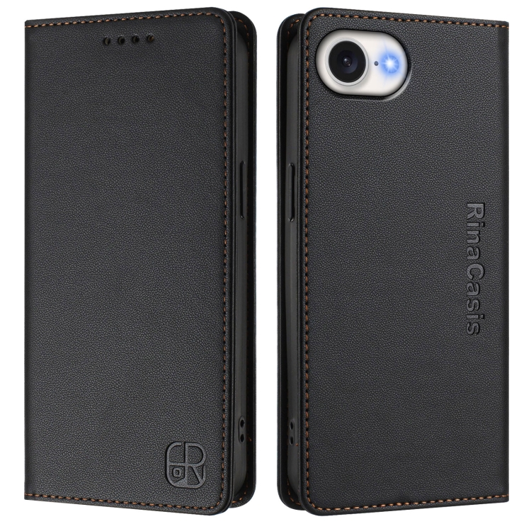 Funda de Cuero para iPhone Se 2024 Rc01 con Doble Pliegue y Succión Magnética (Negra)