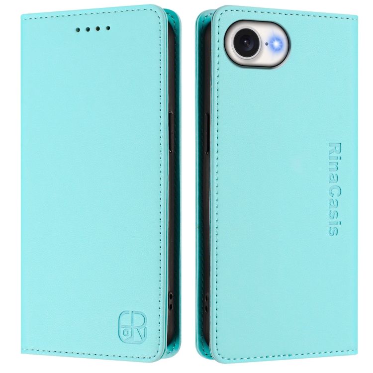 Funda de Cuero con Doble Pliegue y Succión Magnética para iPhone Se 2024 Rc01 (Verde Menta)