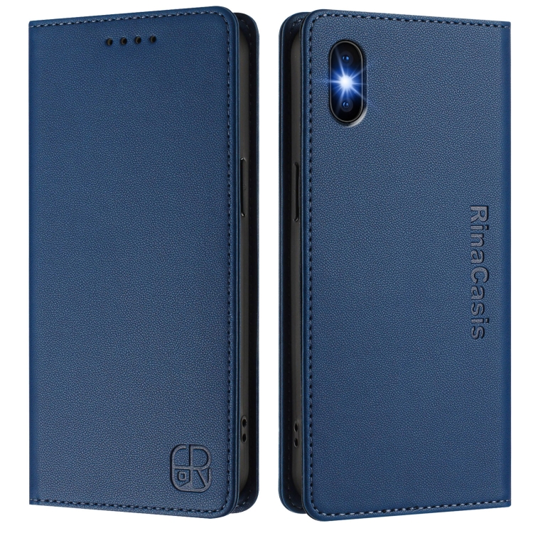 Funda de Cuero Rc01 para iPhone X/Xs con Doble Pliegue y Succión Magnética (Azul Oscuro)