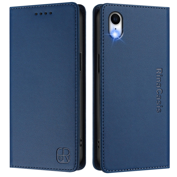 Funda de Cuero con Doble Pliegue y Succión Magnética para iPhone Xr Rc01 (Azul Oscuro)