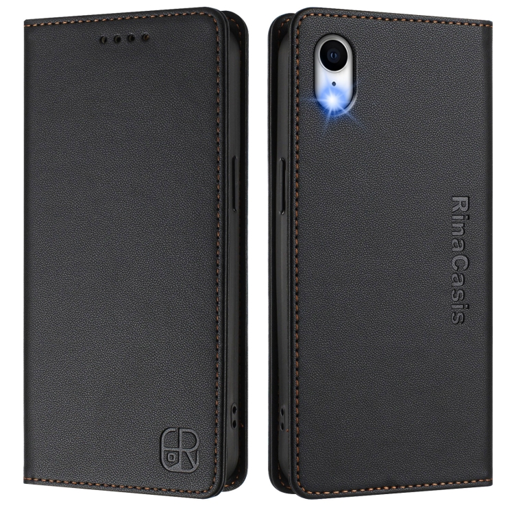 Funda de Cuero para iPhone Xr Rc01 Doble Pliegue Succión Magnética (Negra)